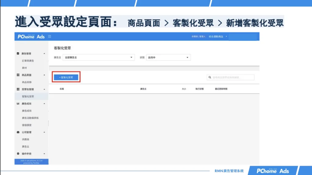 詳細教學可以參考:PChome RMN 客製化受眾操作全攻略