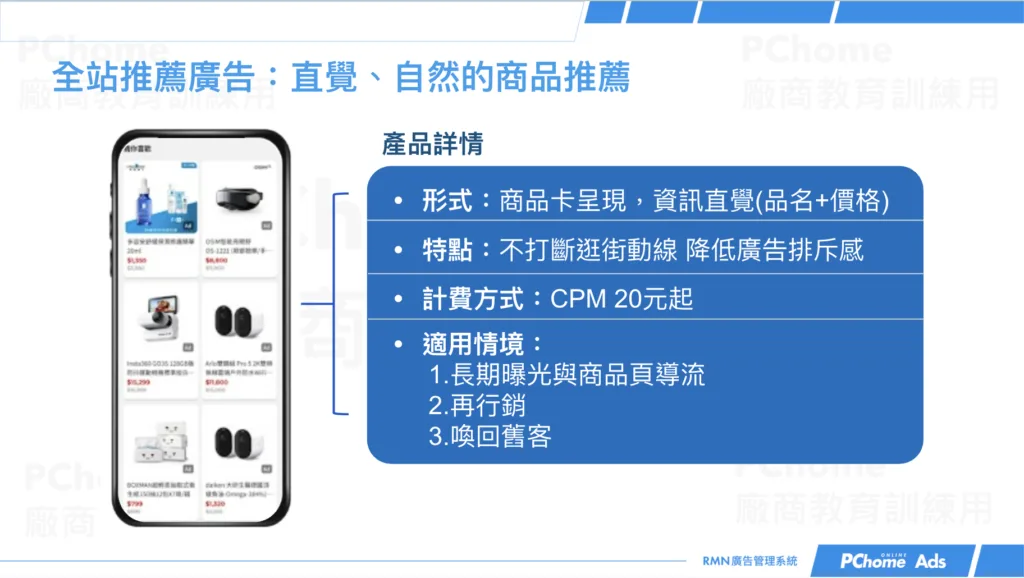 在 PChome Ads 的體系中,原生商品廣告主要是指「全站推薦廣告」 。它會以「商品卡」的形式,自然融入各個頁面的「猜你喜歡」或「其他人也逛過」商品流中