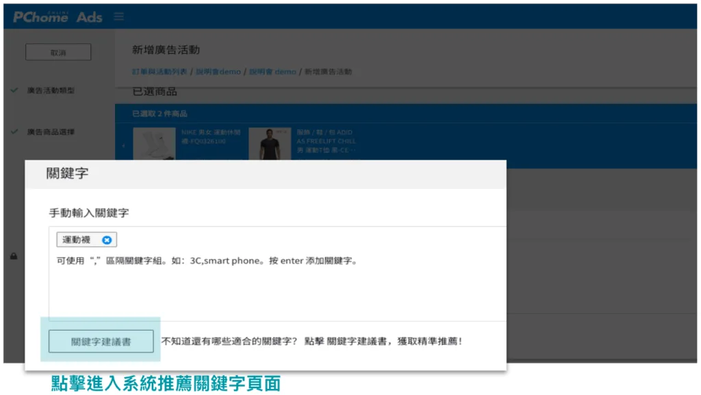 三、PChome RMN Ads 關鍵字規劃實戰範例