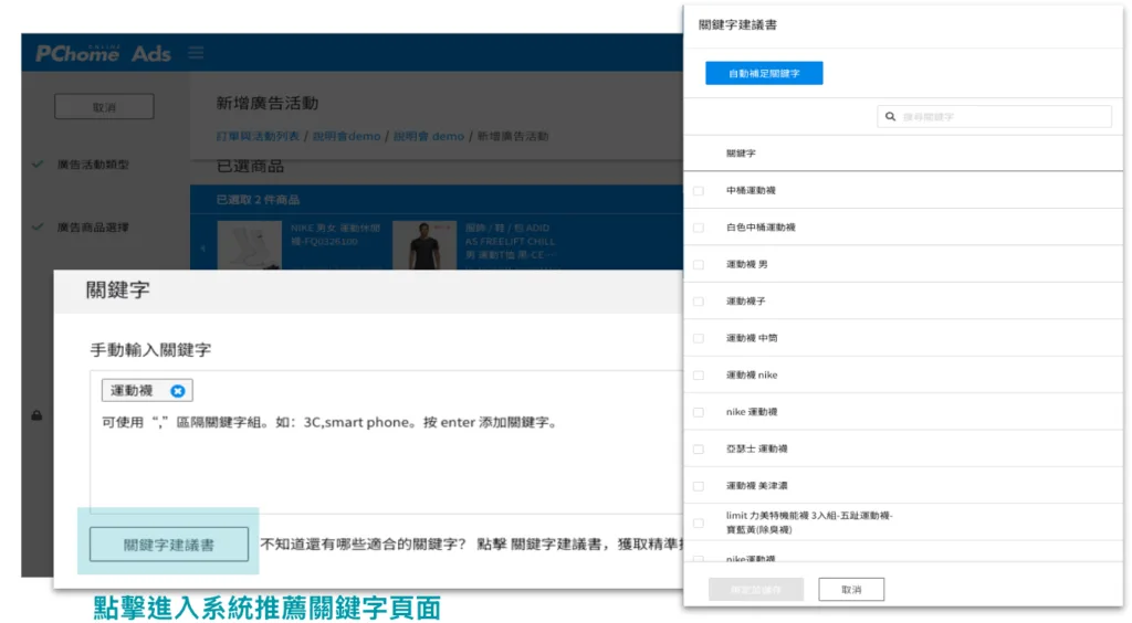 點擊後即會跳出「關鍵字建議書」功能